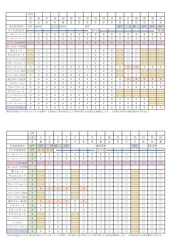 12月22日~26日まではご予約できません。(ネット・店頭共にクリスマスでスペース確保ができません)