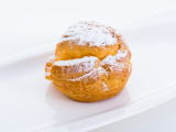 えぼし岩のシュークリーム サックリクッキー生地のシューに生クリームたっぷりのバニラカスタード |