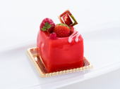 | レアチーズケーキ 片浦レモンの自家製ペ―ストのレモンカードとフランス産のチーズ使用のレアチーズ、イチゴのグラッサージュ |