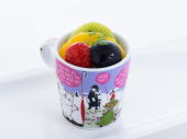 ムーミンのヨーグルトムース フルーツゼリー入りヨーグルトムース、フルーツ飾り |